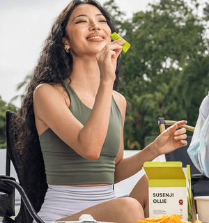 Q: Does Susenji Ollie contain caffeine? A: Yes, it contains a minimal amount of caffeine, much lower than decaf coffee, to support metabolism without causing jitters. |